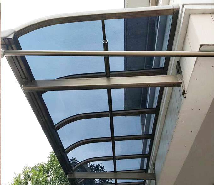 上海郝荣智能建筑有限公司雨棚(A5款窗棚、露台棚)系列产品是高强度铝合金和聚碳酸酯板(耐力板)的结合。主体结构全部采用高品质、高强度铝合金材料精加工而成,具备的氧化保护能力,不生锈,表面特殊的工艺处理,大大提高了雨棚的使用寿命。顶棚耐力板的运用,能遮挡阳光中的有害紫外线对地板、墙壁、窗帘等损害;同时阻挡夏日毒辣的太阳,可以控制室内温度的上升,冷气效果也大幅度提高,从而达到节约能源的作用。